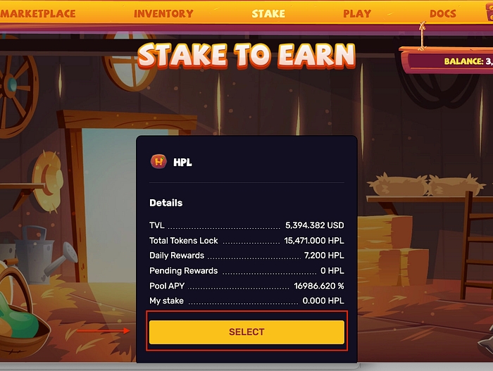 Select the amount of $HPL that you want to stake select approve to stake